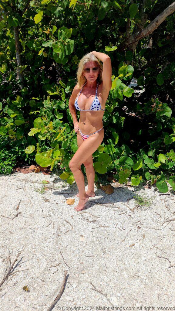 So this patriotic bikini was a gift from a special follower, & I decided to do some photo shoots for America’s birthday wearing the sexiest bikinis on the planet! He was specific about the top and bottoms, so I had to mix and match the stars top with the stripes bottom. The top & bottoms are a size small, & being busty, there is not much room for the top to move before I have a nip-slip!