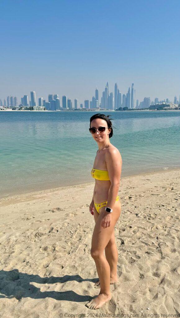 Hi Malibu Strings fans! Enjoying this sexy swimsuit on the shores of Dubai. Loving all the attention I’m getting. Perfectly see-through once wet, it made us both very horny and go home with the waiter’s number Xoxo, Diana B