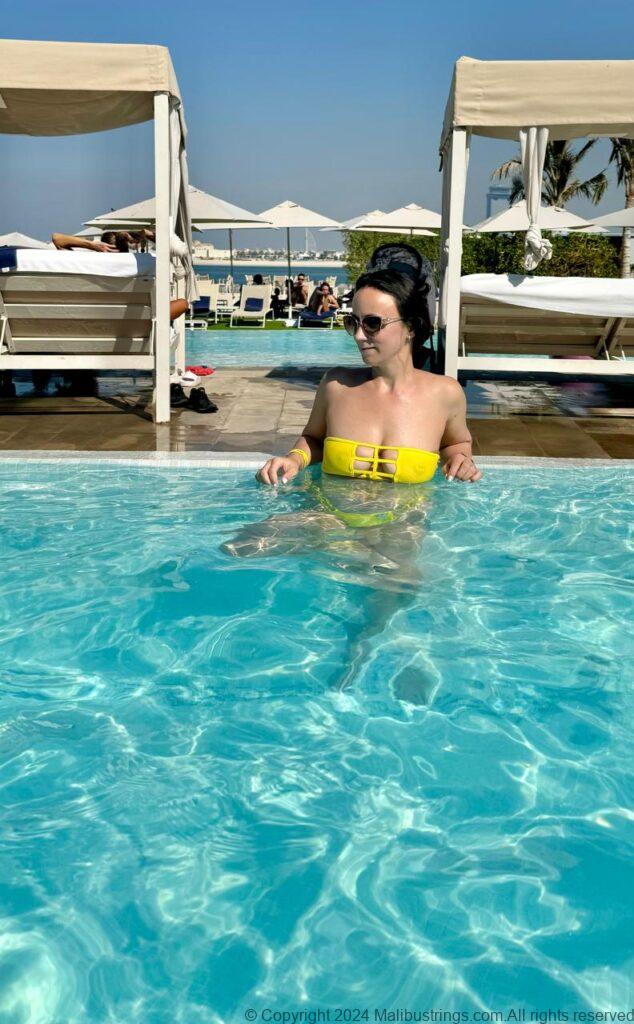 Enjoying this sexy swimsuit on the shores of Dubai. Loving all the attention I’m getting. Perfectly see-through once wet, it made us both very horny and go home with the waiter’s number
