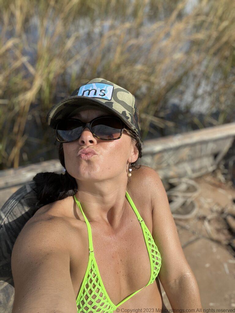 Living in the Sunshine State, we try to go out on the water every chance we get. My pictures were taken on Florida’s beautiful nature coast, in one of my favorite bikinis as well as the New MS Camo hat and T-Shirt.