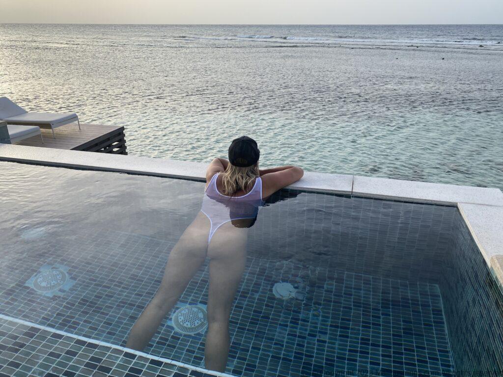 Recently my Hubby and I had a chance to go on holiday in the Caribbean. The looks I got at the pools were such a turn-on! What do you think? Is my MS suit better wet or dry?