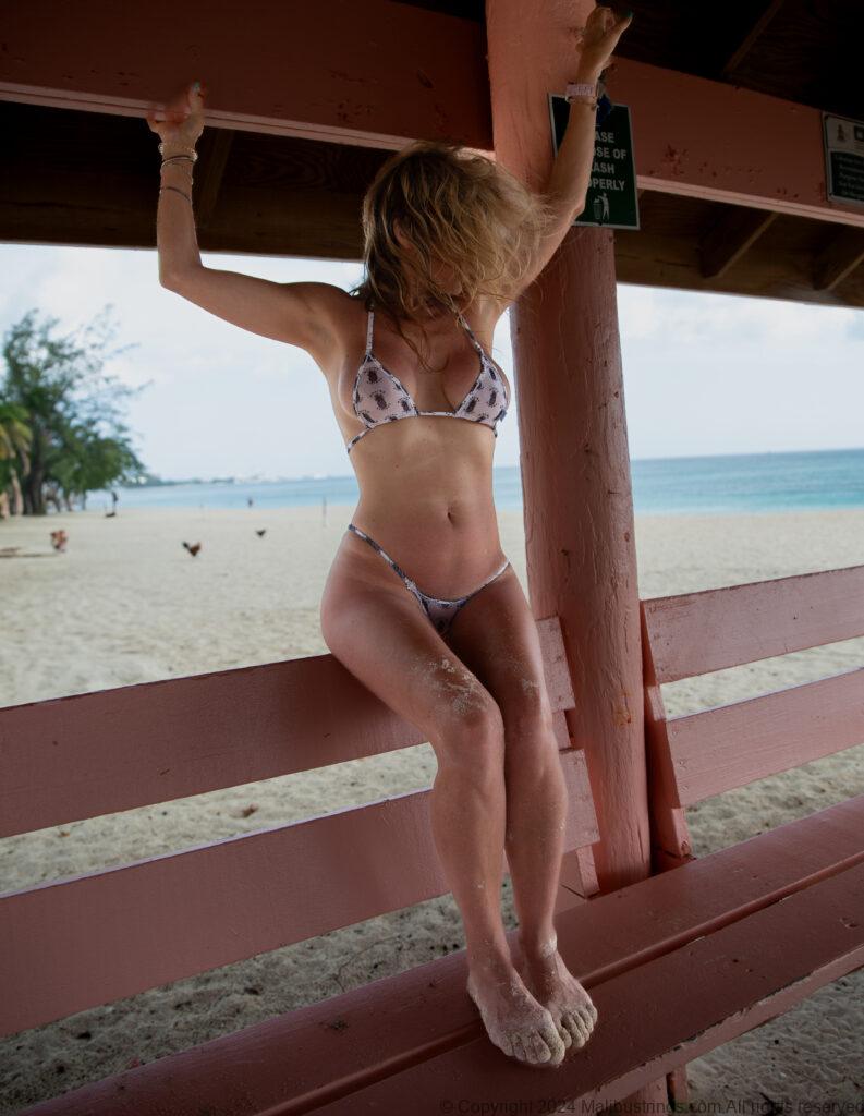 I am wearing my mesh American Pineapple Crystal Bikini, triangle top and tiny bottoms 😉