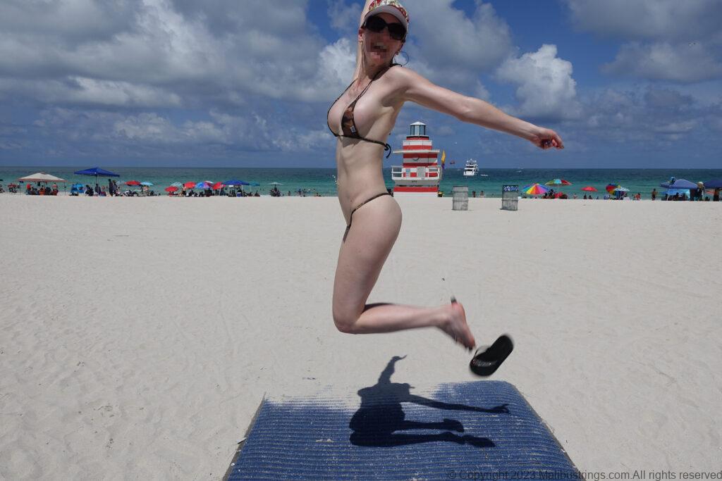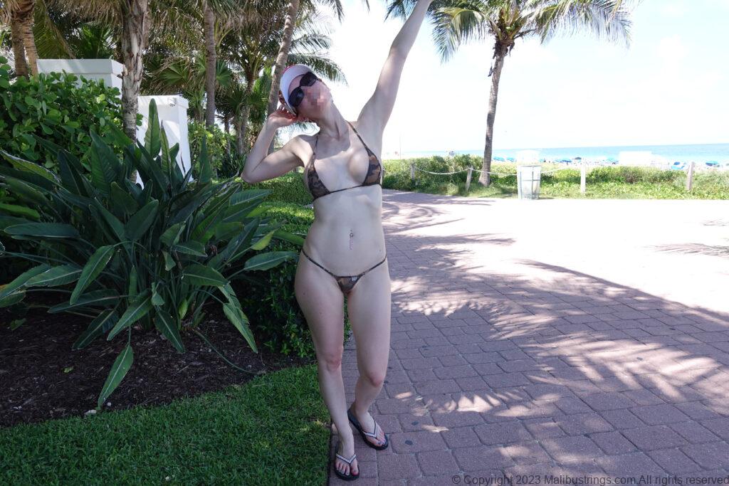 It’s been a long time since I sent you some photos! Here are some photos taken at Miami Beach with an amazing sheer camo micro bikini!