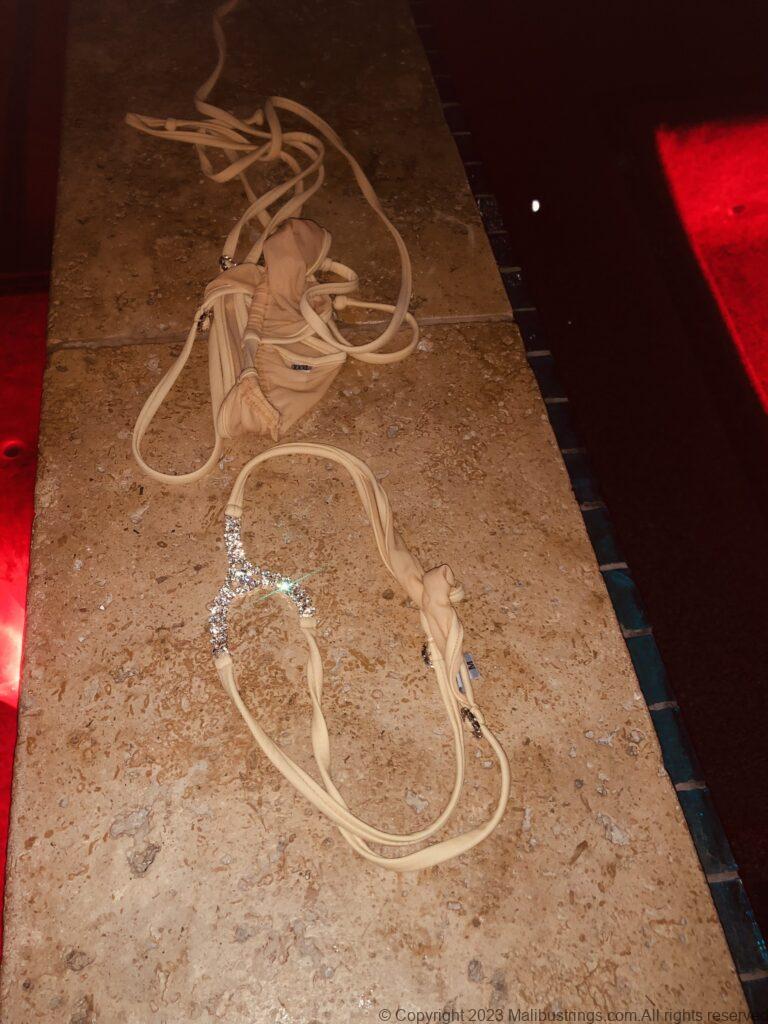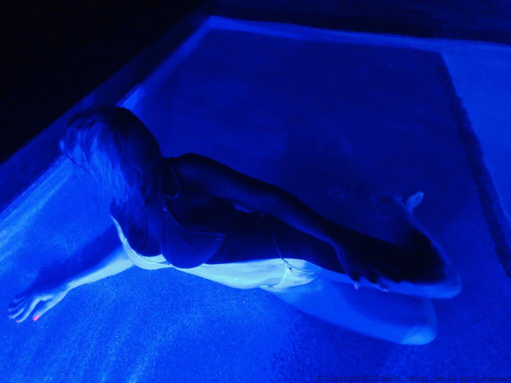 Just some early evening MS bikini fun in the pool! Nothing feels better than the fabric of this sheer nude crystal-string bikini against my skin on a cool spring night! This sexy bikini was picked out and purchased by a very supportive fan….Thank you so very much!! I hope you enjoy it.