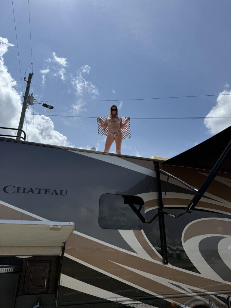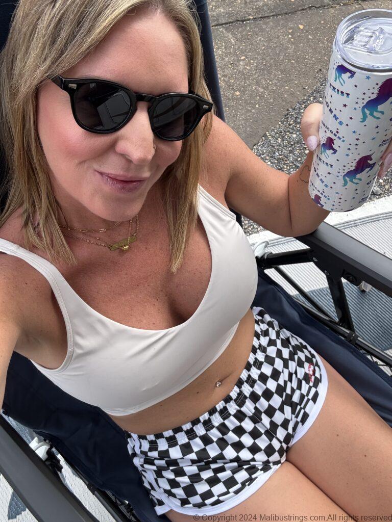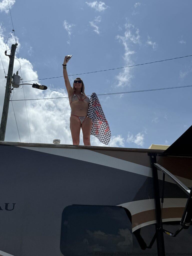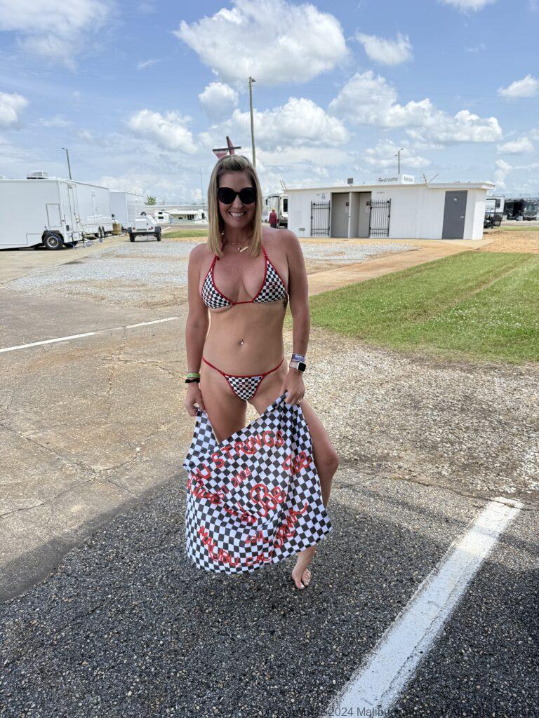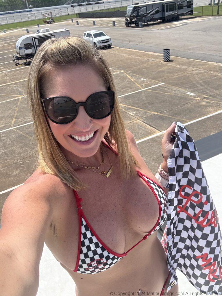My favorite bikini brand Malibu Strings sent me some checkered flag bikinis for the races and I got a lot of stares walking around the infield in it but I didn’t care! I love showing off my MS bikinis anywhere I can! I also got lots of compliments and asks where I got it, and I love to brag about it! Can’t wait for the next race to show them off even more!