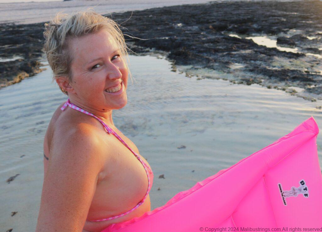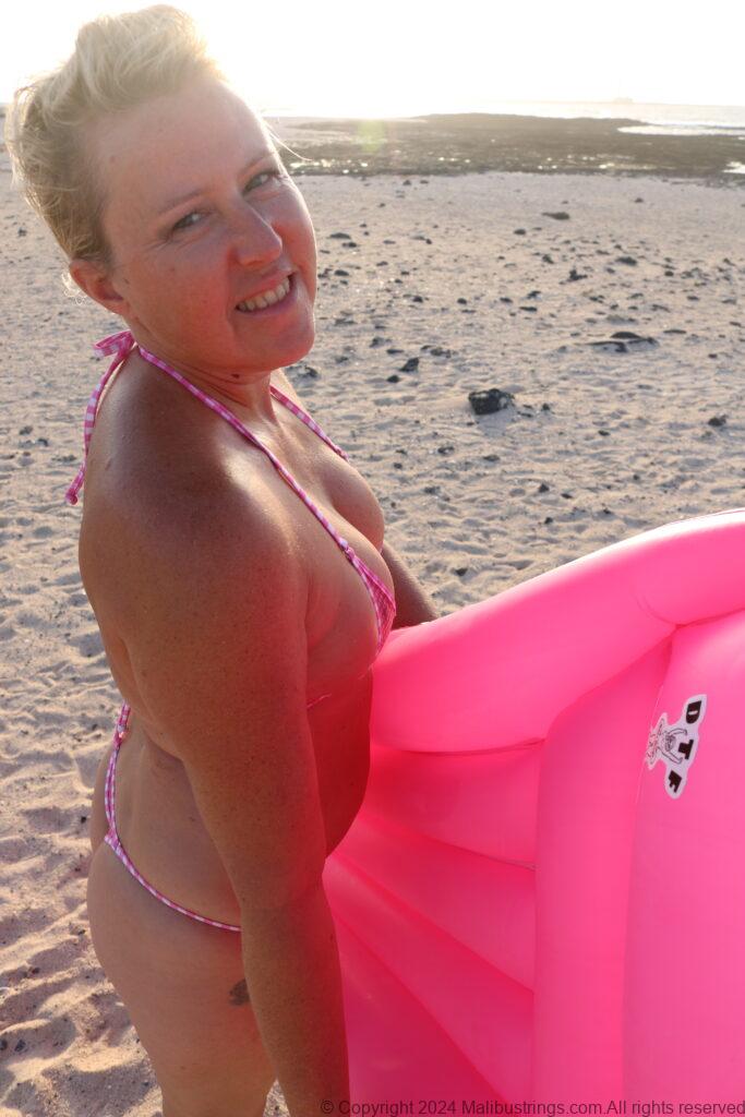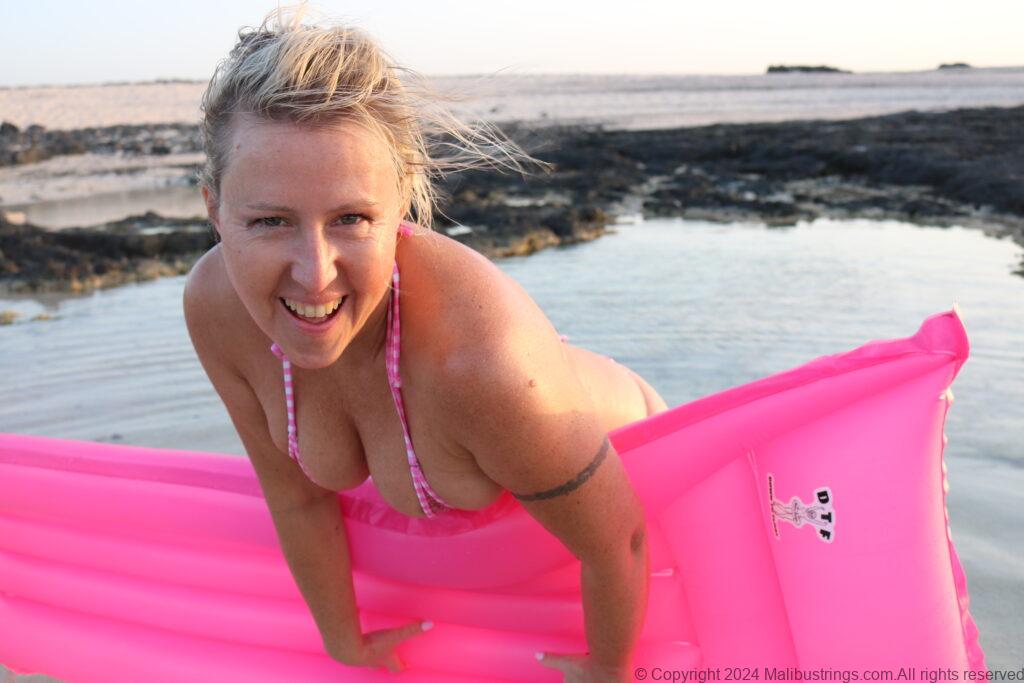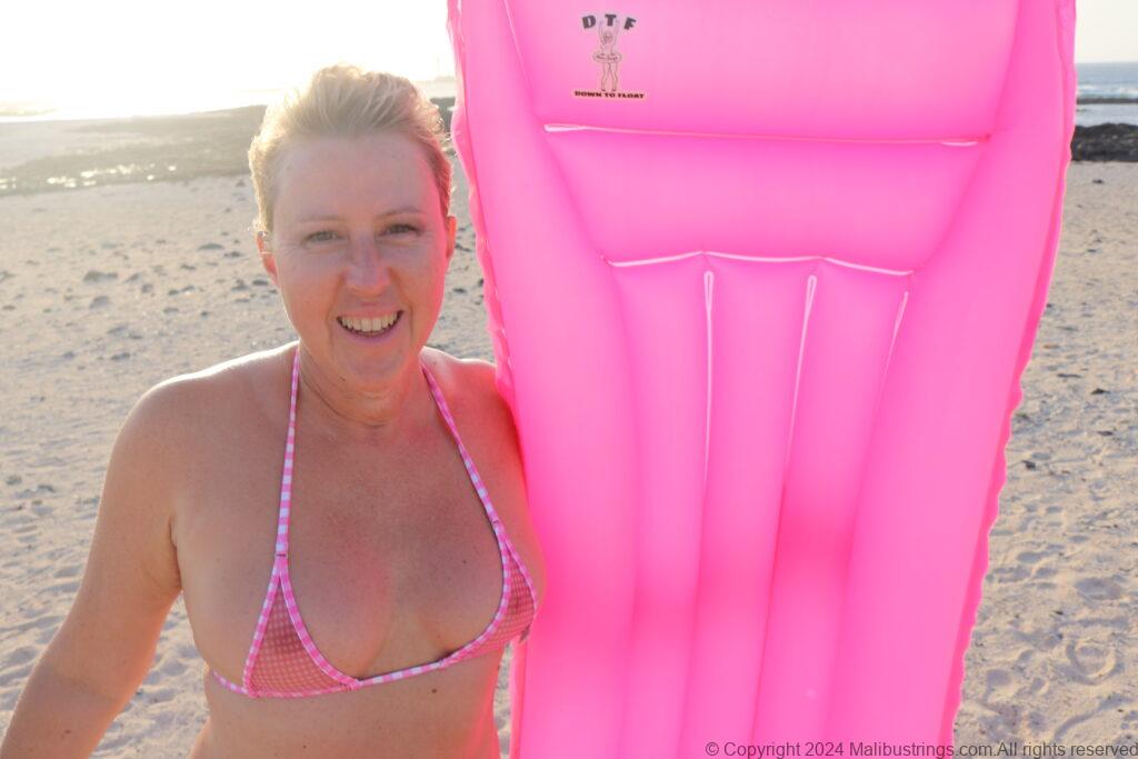 I just had to share my latest beach photos from the beautiful island of Fuerteventura in the Magic Nude Pink Gingham with my matching DTF float.