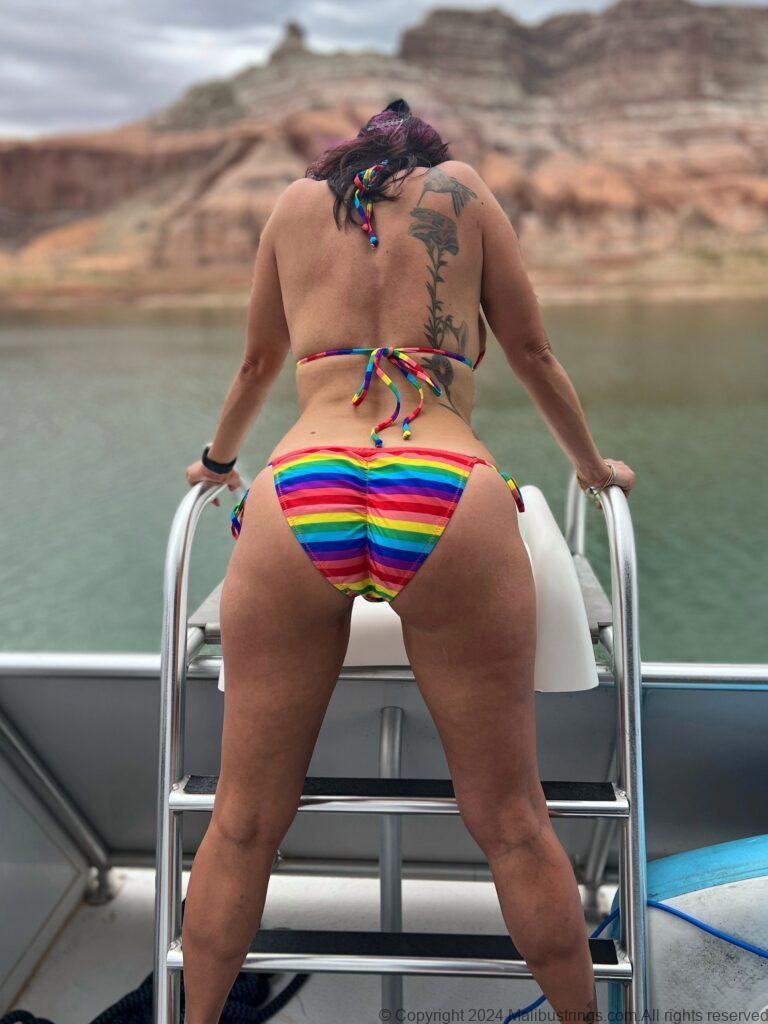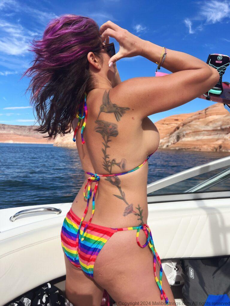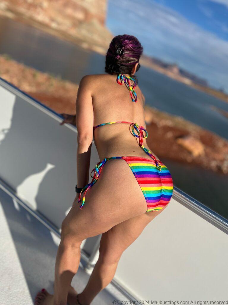 I love time in and around the water. A recent trip to Lake Powell allowed me to show off one of my favorite MS bikinis. The Rainbow bikini allows me to show my PRIDE and feel sexy. I love the attention I get when I wear any of my Malibu String suits.