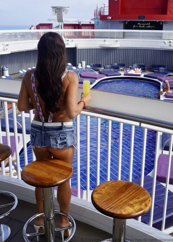 On a cruise, I love to have my morning mimosa while I walk around the ship. This morning I threw on my newest MS sling to take my morning walk (easy on and off). My cameraman said the lighting was great and asked if he could grab some pics….sorry for the messy hair. Enjoy the pics and feel free to send me an email, especially if you want to know how to see more of me!